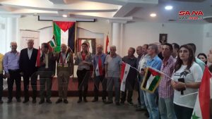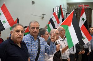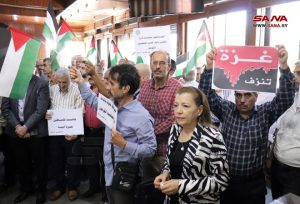 وفي اللاذقية، أكد رئيس فرع نقابة المهندسين المهندس حاتم حاتم أن عملية طوفان الأقصى التي أطلقتها المقاومة الفلسطينية زلزلت أركان العدو وكسرت الصورة النمطية التي رسمها لنفسه، مندداً بالممارسات العنصرية والهمجية الوحشية التي ينتهجها الاحتلال من قتل وسفك للدماء للتغطية على إخفاقه وفشله.