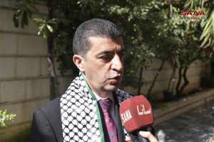 وأكد نقيب المهندسين الزراعيين في سورية المهندس عبد الكافي الخلف أن القضية الفلسطينية قضيتنا المركزية ومحور الصراع مع العدو، وأنه من حق هذا الشعب تحرير أرضه من الاحتلال وإقامة دولته وعاصمتها القدس.