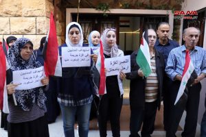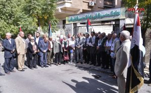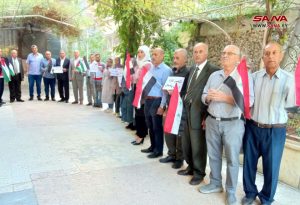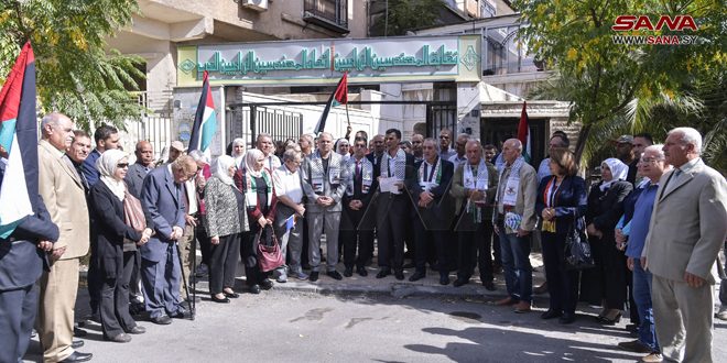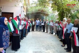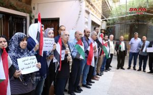 ففي دمشق عبر المهندسون والأطباء البيطريون المشاركون بالوقفة عن استنكارهم وتنديدهم بجرائم الاحتلال الصهيوني المرتكبة بحق الشعب الفلسطيني، مبينين أن هذه الوقفة تأتي تضامناً مع الشعب الفلسطيني الذي يقف بوجه المجازر الوحشية لسلطات الاحتلال.