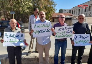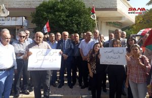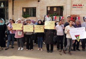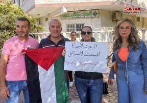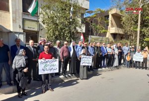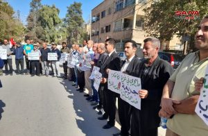 وفي درعا أدان المهندسون الزراعيون والأطباء البيطريون خلال وقفتهم أمام مديرية الزراعة درعا مجازر الاحتلال الإسرائيلي بحق المدنيين الأبرياء في قطاع غزة مؤكدين دعمهم للمقاومة الفلسطينية وتأييدهم لعملياتها.