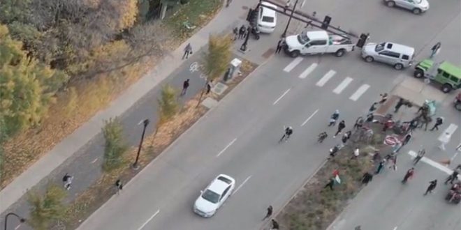 ونقلت شبكة (سي بي إس) الأمريكية الإخبارية عن شرطة المدينة: “إن شخصاً مجهولاً يقود سيارته قام أمس باقتحام المسيرة وصدم المدنيين ثم قاد سيارته بعيداً”، مشيرة إلى سماع طلق ناري أيضاً.