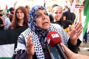 وفي تصريحات لمراسل سانا أكد أبو أحمد نضال عضو اللجنة الشعبية لتحرير فلسطين القيادة العامة أن هذه الوقفة تحية لأرواح شهداء المقاومة الفلسطينية وتنديد بمجازر العدو الإسرائيلي وداعميه ضد المدنيين العزل منذ احتلال فلسطين، مبيناً أن هذا الشعب مستمر في نضاله وكفاحه حتى تحرير كل شبر من أرضه المحتلة.