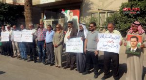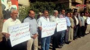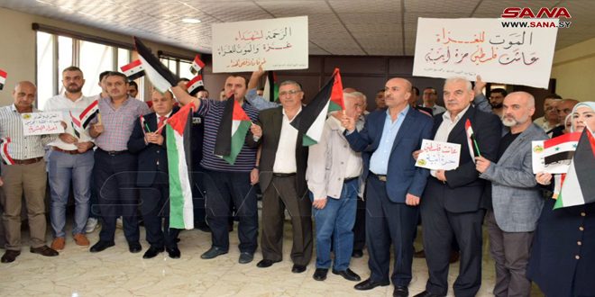 وفي درعا، ندد العاملون في فرع النقابة بالحصار الذي يتعرض له أهالي قطاع غزة فيما بين المشارك بالوقفة أيهم المستريحي أن ما تتعرض له غزة من عدوان هو حرب إبادة جماعية للفلسطينيين بمباركة أميركية وغربية، مطالباً بإدخال المساعدات الإنسانية للفلسطينيين المحاصرين.