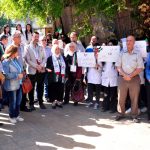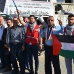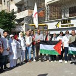 وأشار رئيس فرع النقابة بحمص علاء حلواني إلى أن هذه الوقفة هي تعبير عن التضامن مع المقاومة الفلسطينية، وإدانة المجازر الوحشية التي يرتكبها العدو الصهيوني بحق المدنيين من أطفال ونساء وكوادر طبية وصحية ومسعفين، متجاوزاً كل الأعراف والقوانين الدولية.