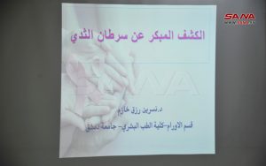 الطبيبة في قسم الأورام بكلية الطب البشري بجامعة دمشق الدكتورة نسرين خازم بينت في تصريح لسانا أن التوعية بهذا المجال مهمة، باعتبار أن الكشف عن سرطان الثدي بمراحله الأولى يضمن نسب شفاء عالية، ويقصر فترة العلاج، ويجنب العلاجات المفرطة الكيميائية والجراحية، داعية المرضى إلى إجراء الاختبارات من قبل المتخصصين والاستفادة من تجارب المرضى في هذا المجال.