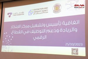 وقعت جامعة دمشق وهيئة التميز والإبداع ومؤسسة تيما التنموية اليوم مذكرة تفاهم تهدف لتأسيس وتشغيل مركز للابتكار والريادة ودعم التوظيف في القطاع الرقمي.