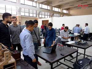 وأوضح الطالب المهندس فياض صفر من قسم القيادة الكهربائية أن مشروع تخرجه هو عبارة عن روبوت سبايدر للسير على الأراضي الوعرة، بدلاً من الروبوتات المدولبة أو المجنزرة ، وأن الفكرة الأساسية لهذا المشروع تقديم المساعدة للمتضررين بالكوارث الطبيعية حرائق_زلازل، ومن شأنه المساعدة في تقديم الغذاء والإسعاف في أغلب الحالات.