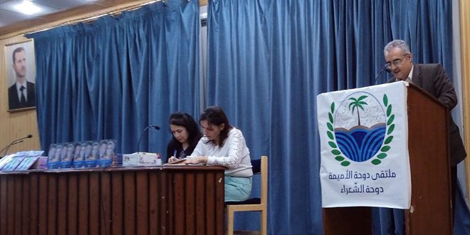 استضاف المركز الثقافي بحمص حفل توقيع ديوانين شعريين لملتقى دوحة الأميمة للشعراء، الأول للشاعر عبد الكريم اللامي بعنوان “آلهة حبي” والثاني للشاعرة نورة اليونس بعنوان “زهرة الوحواح”.