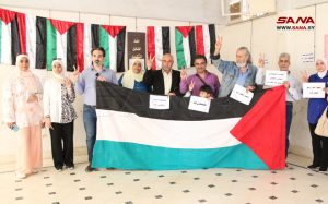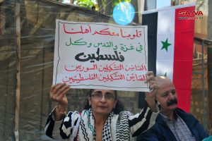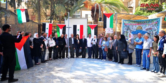 نظم اتحادا الفنانين التشكيليين السوري والفلسطيني في دمشق وعدد من المحافظات وقفات تضامنية دعماً للشعب الفلسطيني ورفضاً لعدوان الكيان الصهيوني على قطاع غزة المحاصر.