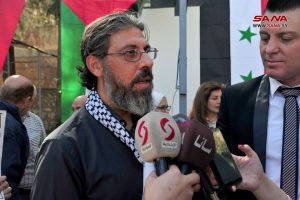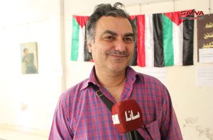 وبين الفنان التشكيلي الفلسطيني معتز العمري أن الفنانين السوريين والفلسطينيين يقفون في خندق واحد خدمة لقضية واحدة، مؤكدين موقفهم الثابت من القضية الفلسطينية قائلاً: “إننا من أرض سورية المقاومة ملتزمون بقضيتنا بتقديم الفن الملتزم والمقاوم في وجه التشويه الذي تتعرض له قضيتنا المحقة”.