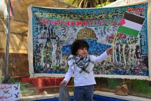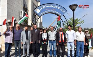 وأوضح رئيس اتحاد الفنانين التشكيليين السوريين عرفان أبو الشامات أن الاحتلال الصهيوني ومن خلفه الولايات المتحدة الاميركية يمارسون أبشع الجرائم بحق الشعب الفلسطيني، مؤكداً أن الفنانين التشكيليين في سورية يقفون مع الشعب الفلسطيني ضد إجرام الاحتلال الغاصب حتى تحقيق النصر وتحرير فلسطين.