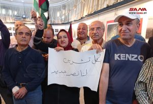 وأشارت رئيسة فرع اتحاد دمشق مها محفوض إلى أن الفنانين التشكيليين في سورية يؤكدون موقفهم الثابت مع خيار المقاومة لاستعادة الحقوق العربية المغتصبة، ويستنكرون ما يقوم به هذا الكيان الغاصب من أعمال عدوانية والتي تستهدف المدنيين الأبرياء العزل.