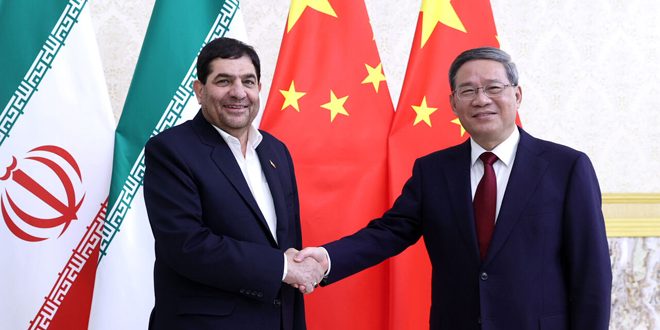 وخلال لقائه مع النائب الأول لرئيس الجمهورية الإيرانية محمد مخبر في عاصمة قرغيزيا بيشكك على هامش الاجتماع الـ 22 لرؤساء الحكومات بدول منظمة شنغهاي للتعاون قال تشيانغ حسب وكالة “إرنا” إن الصين ضد أي تدخل أجنبي و فرض العقوبات غير القانونية ضد إيران.
