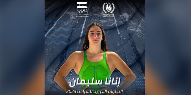 توجت لاعبة منتخب سورية للسباحة إنانا سليمان بالميدالية الذهبية لسباق 800 متر حرة في البطولة العربية المقامة في العاصمة الإماراتية أبو ظبي.
