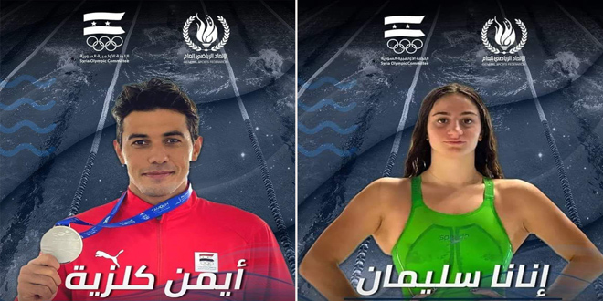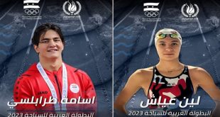 وكانت سليمان حققت أمس ذهبية سباق 800 متر حرة ولين عياش برونزية 100 متر صدر.