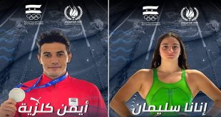 وكانت سليمان حققت أمس ذهبية سباق 800 متر حرة، ولين عياش برونزية 100 متر صدر.