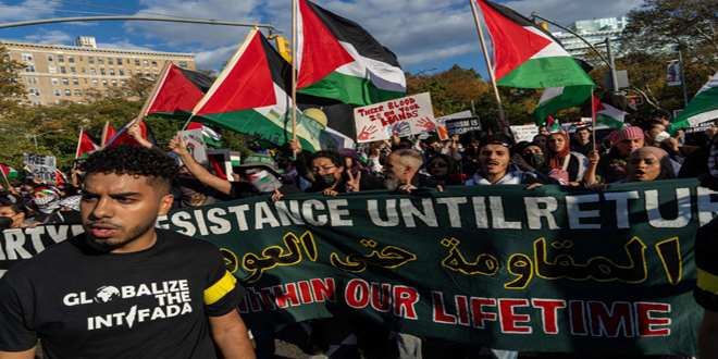ففي نيويورك خرج آلاف الأشخاص في منطقة بروكلين وفق وكالة فرانس برس، في مظاهرة حاشدة، تعبيراً عن تضامنهم مع الفلسطينيين في قطاع غزة الذين يتعرضون للقصف المكثف والمستمر على منازلهم وأحيائهم.