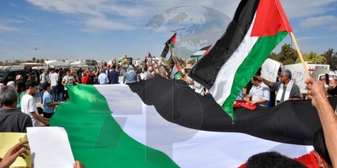 ورفع المتظاهرون الأعلام الفلسطينية وصوراً تظهر جانباً من المجازر التي يتعرض لها الشعب الفلسطيني من قبل الاحتلال الإسرائيلي الفاشي، كما أشادوا بصمود المقاومة وطالبوا بفتح المعابر لتقديم المساعدات الإنسانية.