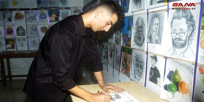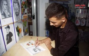 حيان 19 عاماً المنحدر من قرية مردك بريف السويداء روى خلال حديثه لـ”سانا الشبابية” كيف بدأ بتطوير موهبته عام 2016 بإشراف الفنان التشكيلي عماد النداف الذي دربه وعلمه بشكل أكاديمي وأهله للمشاركة بالعديد من المعارض، منها ضمن المركز الثقافي في قريته وفي ملتقى قمح ولون بمدينة شهبا.