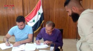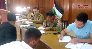 انضم عشرات المطلوبين من أبناء ريف دمشق الغربي ممن تخلف عن الخدمة الإلزامية والاحتياطية والفارين من الخدمة العسكرية والشرطية، وكل من لديه مشكلة أمنية أو عسكرية إلى عملية التسوية، وذلك في المركز الثقافي بمدينة البعث بريف القنيطرة.