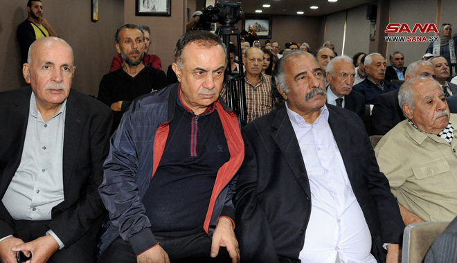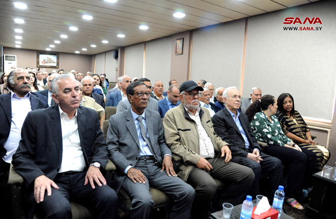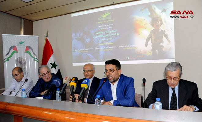 أقام اتحاد الكتاب العرب ندوة بعنوان “التضامن العربي والعالمي مع الشعب العربي الفلسطيني الواقع والمأمول”، شارك فيها سفير تونس في دمشق الدكتور محمد المهذبي وسفير الجزائر الدكتور كمال بوشامة، وسفير جنوب أفريقيا الدكتور باري فيليب غيلدر.