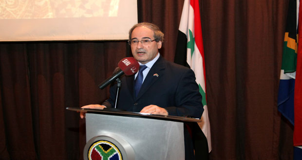 وقال المقداد عندما نجتمع في دمشق للاحتفال بانتصار شعب جنوب افريقيا فاننا في الوقت عينه نخوض ذات النضال ضد الإرهاب الدولي ومن يدعمه في السعودية وقطر وتركيا وفرنسا والولايات المتحدة ونسجل صفحات جديدة من النضال العالمي من أجل تحقيق الحرية والعدالة والامن والاستقرار في جميع انحاء العالم مضيفا نقول لكل من يتساهل مع الإرهاب الدولي ان هذا الإرهاب لن يطال سورية فحسب مشيرا الى انه سيرتد على داعميه ومموليه اينما كانوا.