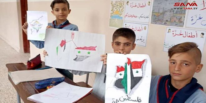 ولفتت مراد إلى أن الأطفال الذين شاركوا في ورشات الرسم عبروا بإحساس عال عن عمق انتمائهم القومي ومحبتهم لأبناء الشعب الفلسطيني من خلال رسم العلم الوطني الفلسطيني وخارطة فلسطين وعاصمتها القدس العربية، إضافة إلى مجموعة من الصور التي تظهر مدى الإجرام الذي قام به الصهاينة من قتل للأطفال وتهديم للمنازل والمدارس، مشيرة إلى أن هذا الإحساس العالي ناتج عن عيش أطفال وأبناء سورية تجارب مماثلة بسبب أفعال التنظيمات الإرهابية التي قتلت وهجرت أبناء الشعب السوري على مدى السنوات الماضية.