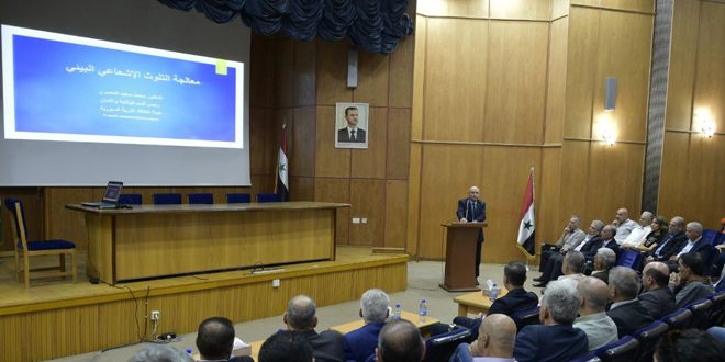 بدوره تحدث الدكتور سعيد المصري رئيس قسم الوقاية والأمان في هيئة الطاقة الذرية السورية عن الطرائق المعتمدة والخيارات المناسبة بيئياً لمعالجة المناطق الملوثة والتخلص الآمن من النفايات المتراكمة والحاوية على المواد المشعة الطبيعية.