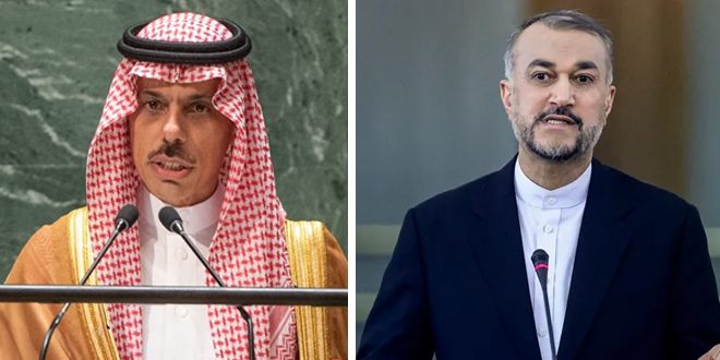 بحث وزيرا الخارجية الإيراني حسين أمير عبد اللهيان، والسعودي فيصل بن فرحان في اتصال هاتفي اليوم آخر التطورات على الساحة الفلسطينية والعدوان الإسرائيلي المستمر على قطاع غزة.