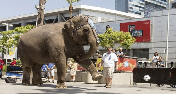 وقام الفيل بتسديد الكرة مرتين إلى الشباك الأرجنتينة بعد وضع هدفين أمامه يحملان العلمين الألماني والأرجنتيني، ما يعني أن ألمانيا ستنجح بالتسجيل في شباك التانغو والفوز باللقب.