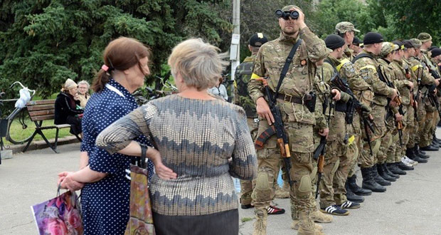 وقال الدبلوماسي الروسي في بيان نشر على موقع وزارة الخارجية الروسية الإلكتروني “مع أسفنا تتواصل حرب حقيقية في أوكرانيا ويمكن بالطبع محاولة إخفاء هذه الواقعة الثابتة بمصطلحات ذات وقع حسن على شاكلة “العملية المضادة للإرهاب” و”إجراءات لحماية وحدة الأراضي” و”تدابير لحفظ النظام” وكل ذلك لا يغير من جوهر الأمر”.