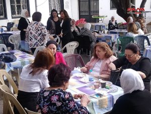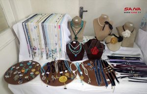 المهندسة روضة بستنجي عضو إدارة الجمعية تشارك بأعمال يدوية من إكسسوارات وأساور وعقود ومسابح وسلاسل نظارات وموبايلات وغيرها، مشيرة إلى أن صنع الإكسسوارات كان هوايتها منذ الصغر وتستثمرها في الجمعية لجذب الجمهور وخلق جو اجتماعي بين المشاركين.