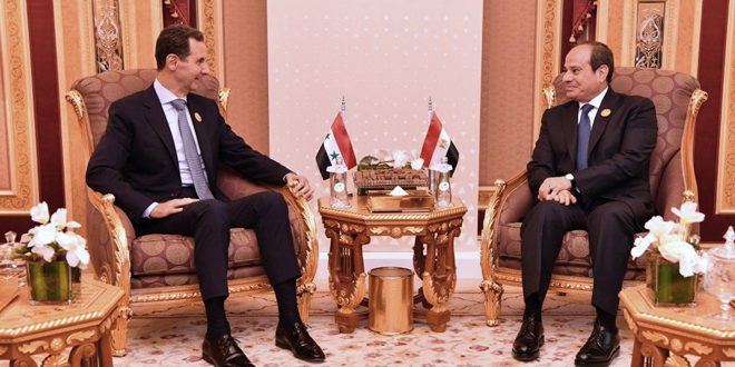 التقى السيد الرئيس بشار الأسد الرئيس المصري عبد الفتاح السيسي في الرياض على هامش أعمال القمة العربية الإسلامية الاستثنائية.