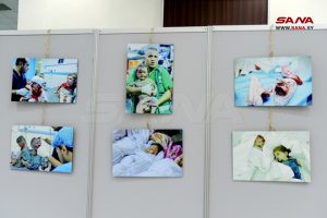 وبين الطالب حازم عباس أنه شارك بصور تعبر عن استهداف الكيان الصهيوني للمستشفيات والمراكز الصحية في غزة، إضافة إلى توثيق 175 شهيداً من المسعفين والأطباء آخرهم الطبيب صلاح زيتون الذي استشهد مع جميع أفراد عائلته.