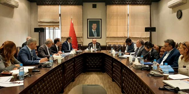 بحث وزير الإدارة المحلية والبيئة المهندس حسين مخلوف مع ممثلي منظمات الأمم المتحدة في سورية اليوم مشروع تعزيز قدرة المجتمعات المحلية في الغوطة الشرقية لمواجهة تغيرات المناخ ونقص المياه عبر الإدارة المتكاملة للموارد الطبيعية وتدخلات التكيف الفورية.