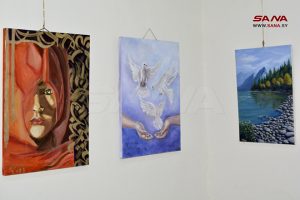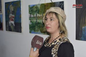 الفنانة وفاء النجار شاركت بثلاث لوحات زيتية عكست شموخ المرأة العربية القوية ووجود الأمل رغم الصعاب وعن تجدد الحياة مشيرة إلى دور الورشة في تغذية الحركة الفنية بحمص وتنشيطها.