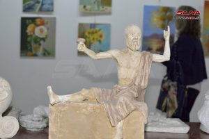 تضمن المعرض الفني الذي استضافته صالة صبحي شعيب بحمص اليوم 35 لوحة فنية وبعض الأعمال النحتية ولوحات بأنواع الخط العربي.
