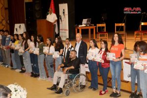 وألقى كلمة مؤسسة الشهيد المدير التنفيذي أحمد قره فلاح أشار فيها إلى أنه رغم الصعوبات والظروف القاسية التي عانى منها أبناؤنا خلال العام الدراسي من خلال تداعيات الزلزال وما تبعها لم يقف ذلك عائقاً أمام تفوقهم وتحصيلهم العلمي مؤكداً أن سورية بهمة أبنائها ستعود إلى مكانها الطبيعي، وبالعلم والعمل سوف نبني الوطن.