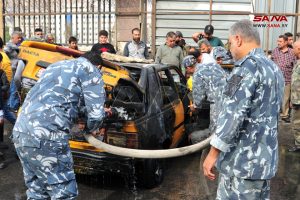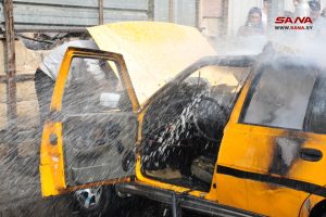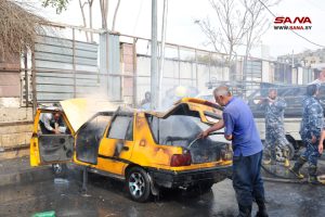 أخمد عناصر فوج إطفاء دمشق اليوم حريقا نشب ضمن سيارة نوع “داسيا” في منطقة البرامكة بدمشق.