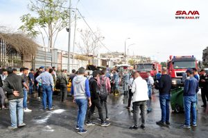 وفي تصريح لمراسلة سانا ذكر العميد داؤد عميري قائد فوج إطفاء دمشق أنه وفور تلقي بلاغ بنشوب حريق ضمن سيارة عمومي قرب دوار الفحامة في منطقة البرامكة، توجهت زمرة من فوج إطفاء دمشق للمكان، وعملت على السيطرة على الحريق وإخماده وتبريده.