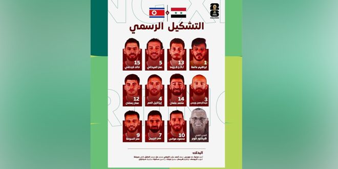 أعلن المدير الفني لمنتخب سورية الأول بكرة القدم هيكتور كوبر تشكيلة منتخبنا في مباراته اليوم مع منتخب كوريا الديمقراطية على ملعب الأمير عبدالله الفيصل في مدينة جدة بالسعودية في الجولة الأولى للدور الثاني من التصفيات المزدوجة المؤهلة لكأس العالم 2026، وكأس آسيا 2027.