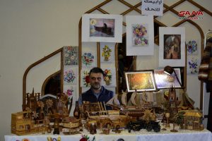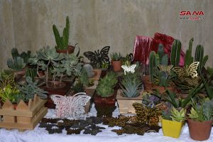 ومن المشاركين محمد طليمات قدم مجموعة من المنتجات المصنعة من الخشب بحرفية عالية، فيما شاركت الشابة بانة حمادة بمجموعة من النباتات الطبيعية ضمن أحواض خشبية ومواد الزينة.