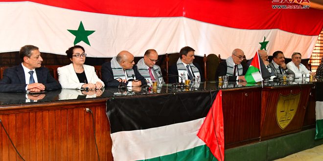 نظم فرع نقابة المحامين محاضرة لدعم الشعب الفلسطيني في مقر النقابة بدمشق بعنوان “انتهاكات القانون الدولي والقانون الدولي الإنساني في غزة”.