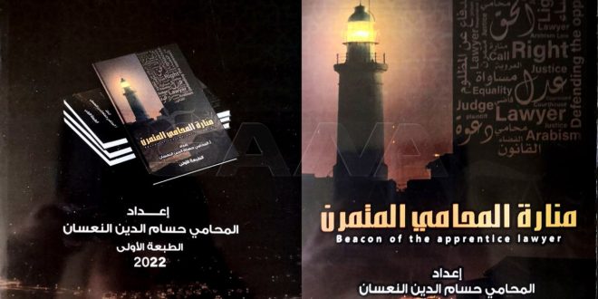 يتضمن كتاب الباحث المحامي حسام الدين النعسان “منارة المحامي المتمرن” علاقة القانون بالمجتمع وثقافة المحامي القادر على ربط واقع الحدث بشخصية الفرد، وقدرة الإنسان الثقافية والاجتماعية على التعامل مع القانون ومعرفة المحامي بوسائل التميز بين الحق والباطل.
