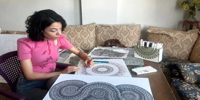 “اطلعتُ على تجارب العديد من الفنانين العالميين وتأثرت بمختلف المدارس الفنية التشكيلية منها الكلاسيكية والواقعية والسوريالية والبورتريه، كما أن قراءة الكتب المتنوعة ساعدتني في توسيع نطاق التفكير والخيال وتطوير دائرة الشغف بفن الماندالا حتى الوصول إلى مستوى احترافي”، بهذه الكلمات بدأت الشابة شاهين (22 عاماً) من سكان محافظة طرطوس وطالبة بالسنة الخامسة هندسة عمارة حديثها لـ سانا الشبابية، موضحة أن موهبتها الفنية ظهرت منذ نعومة أظفارها، حيث اعتمدت على نفسها في تنميتها وتطويرها.