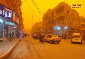 سيطرت أجواء سديمية مغبرة على طقس محافظة الحسكة قبل بدء المنخفض الجوي صباح اليوم، ما أدى إلى ضعف الرؤية وخاصة في الأرياف والطريق الذي يربط بين مدن ومناطق المحافظة، وإلى انتشار الغبار نتيجة هبات الرياح القوية.