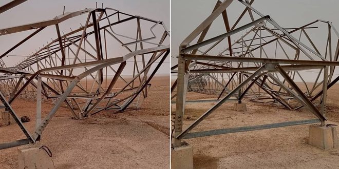 تسببت العاصفة الغبارية والرياح القوية التي تعرضت لها مدينة الحسكة بعد ظهر اليوم بانهيار عدد من أبراج التوتر الكهربائي بريف المحافظة.