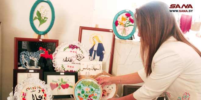 جعلت أسمهان جاسر من الإبرة وسيلتها لتطريز الخيطان على شكل رسومات وعبارات مدونة على أقمشة بإطارات خشبية ضمن مشروعها الحرفي متناهي الصغر الذي انطلقت به من منزلها في مدينة السويداء قبل نحو عام.
