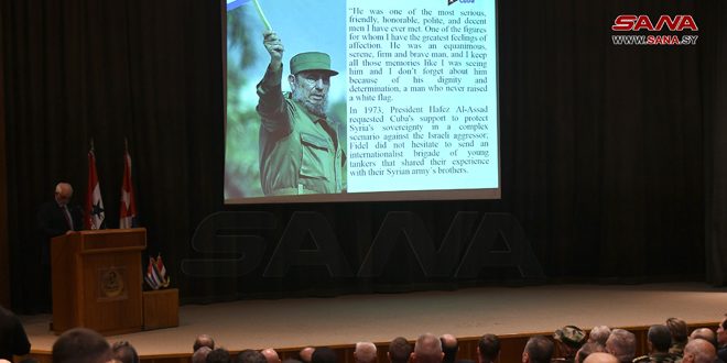 وأكد السفير الكوبي بدمشق لويس ماريانو فرنانديس رودريغيس خلال كلمة أن أفكار وإرث القائد فيدل كاسترو الراسخة بالعدالة الاجتماعية حاضرة اليوم أكثر من أي وقت مضى في ضمير كل من يناضل من أجل عالم أفضل تسوده قيم التضامن والتعاون بين الشعوب والسلام والرفاهية لجميع البشر، دون أي تمييز عقائدي أو عرقي أو سياسي.