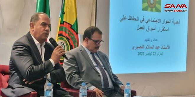 تشارك سورية في الندوة القومية التي تنظمها منظمة العمل العربية في العاصمة الجزائرية بعنوان “دور الحوار الاجتماعي في دعم استقرار المؤسسات وإرساء السلم الاجتماعي”.